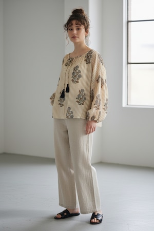 ゆったりとしたシルエットと柔らかなインド綿は、石垣島での生活にぴったり。