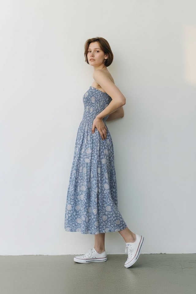 生地にはインドの伝統技法である ブロックプリント を使用しています。
