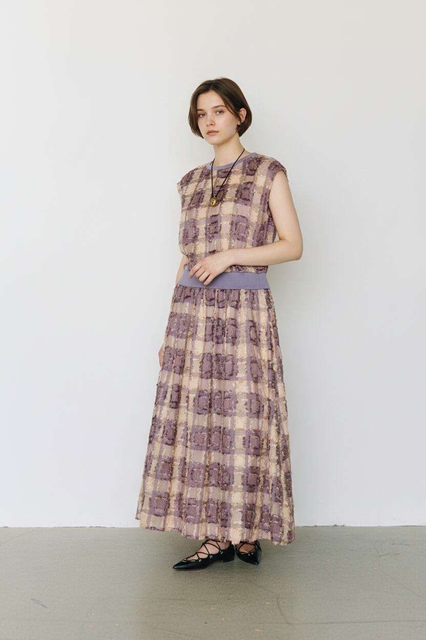カラーリングにこだわった、フリンジデザインが印象的なチェックスカート。