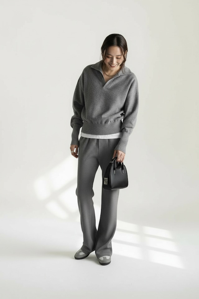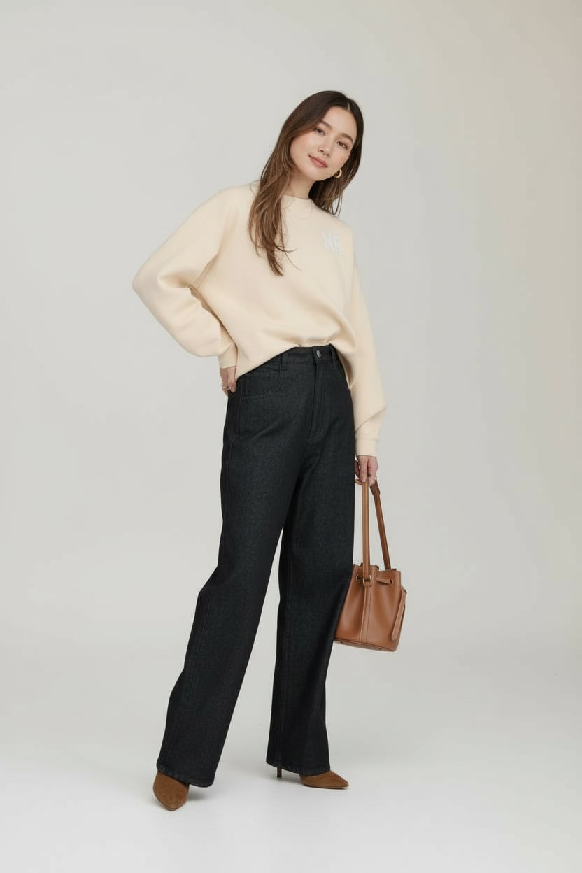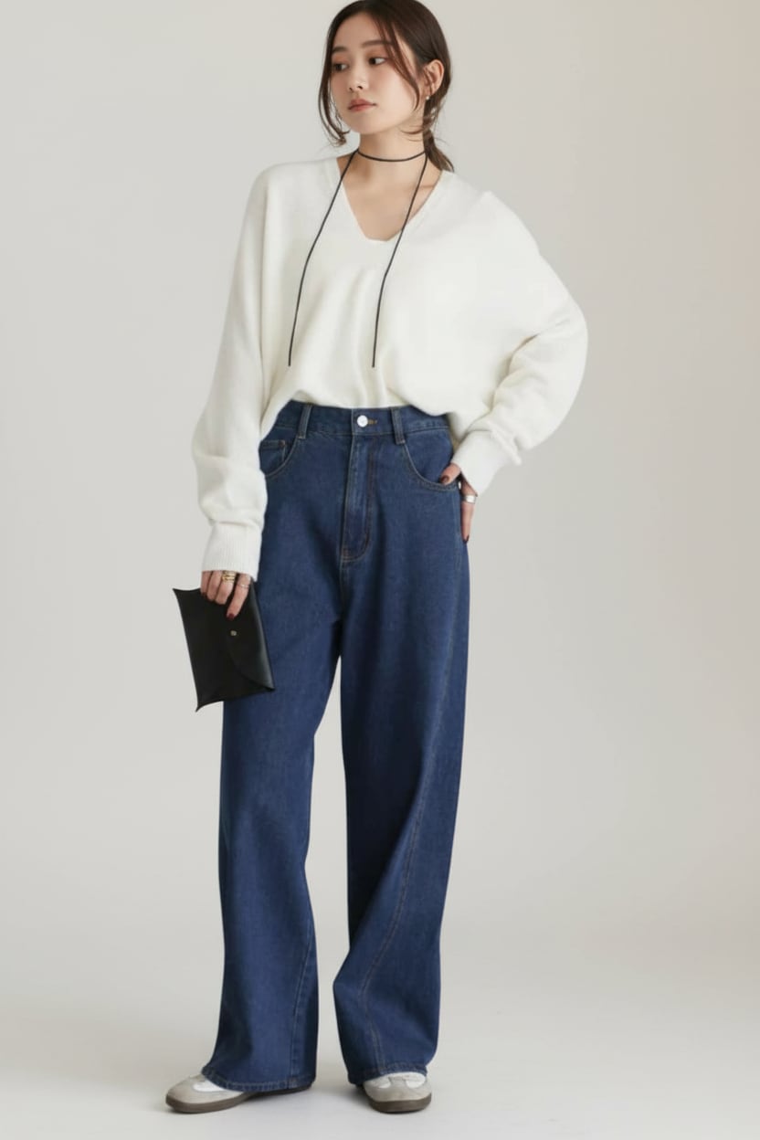 ゆるやかに広がるシルエットと、細部のステッチやバックポケットの「N」刺繍がさりげないアクセントに。