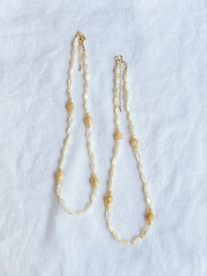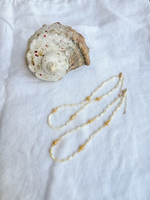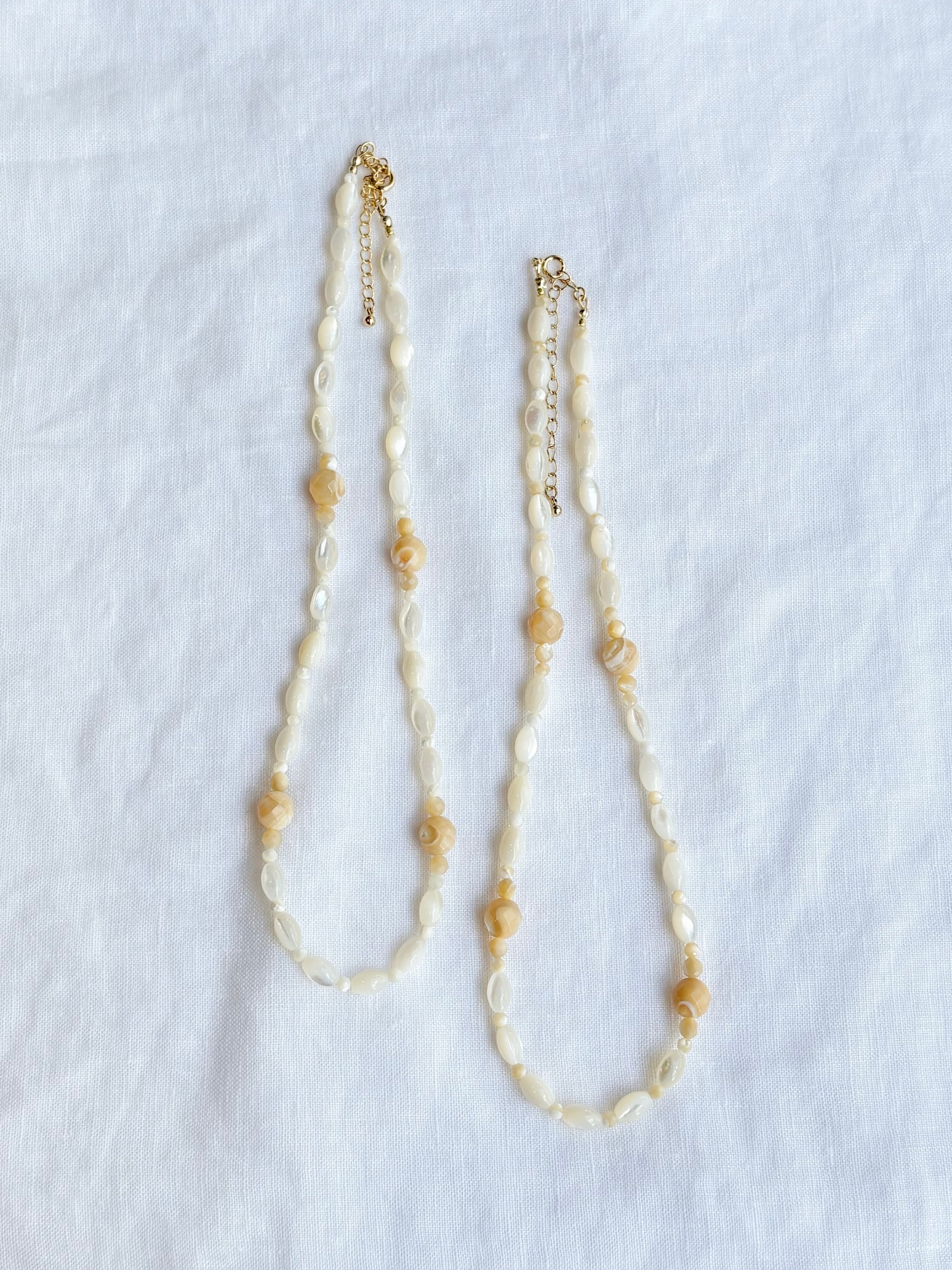 天然シェルを贅沢に使用した、存在感のあるネックレス。