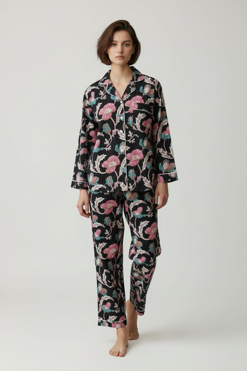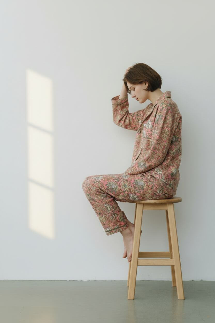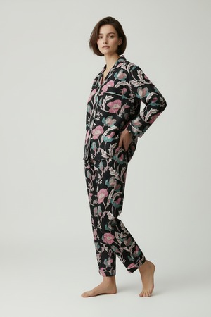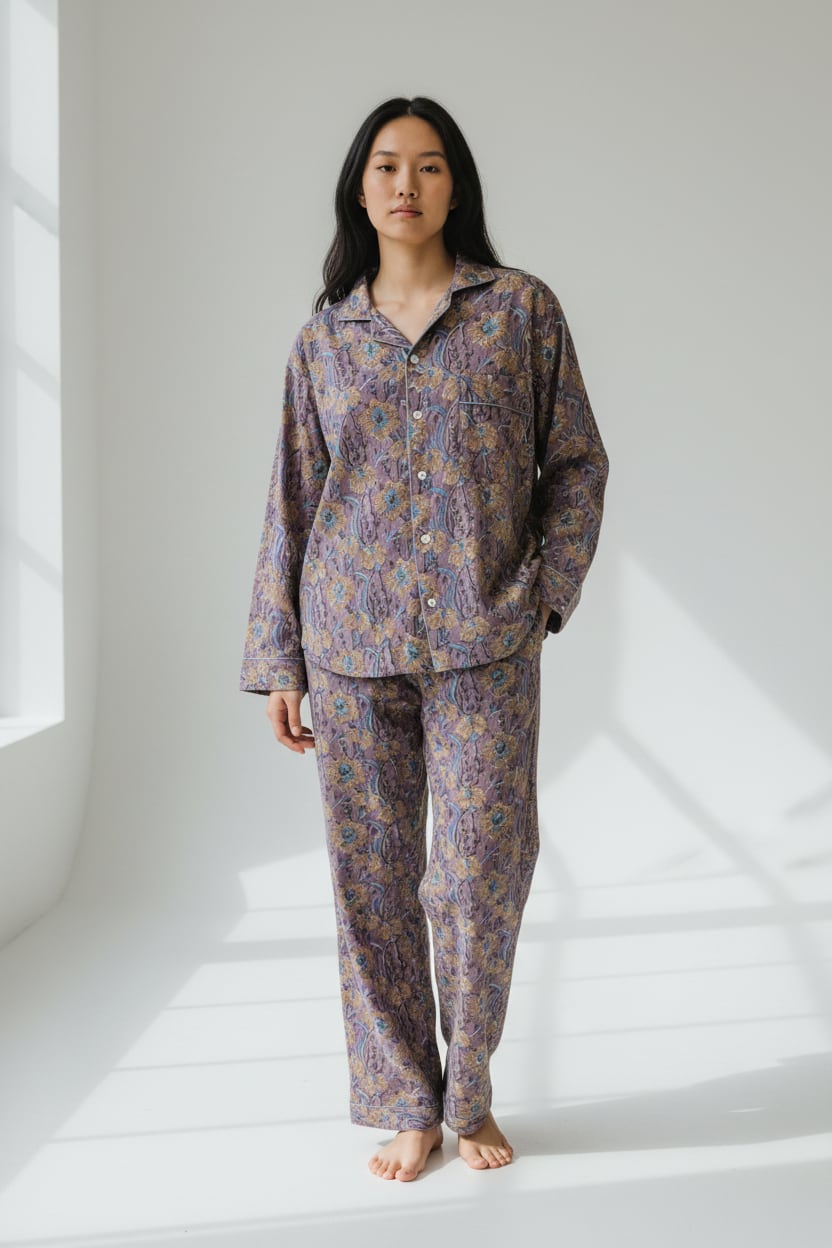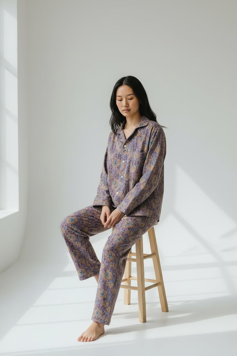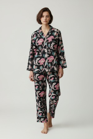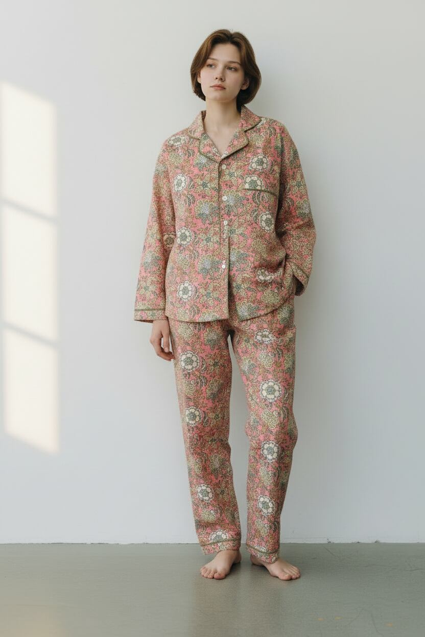 すべてのパジャマに同一生地の巾着が付いており、旅行用やプレゼントにもぴったりです。