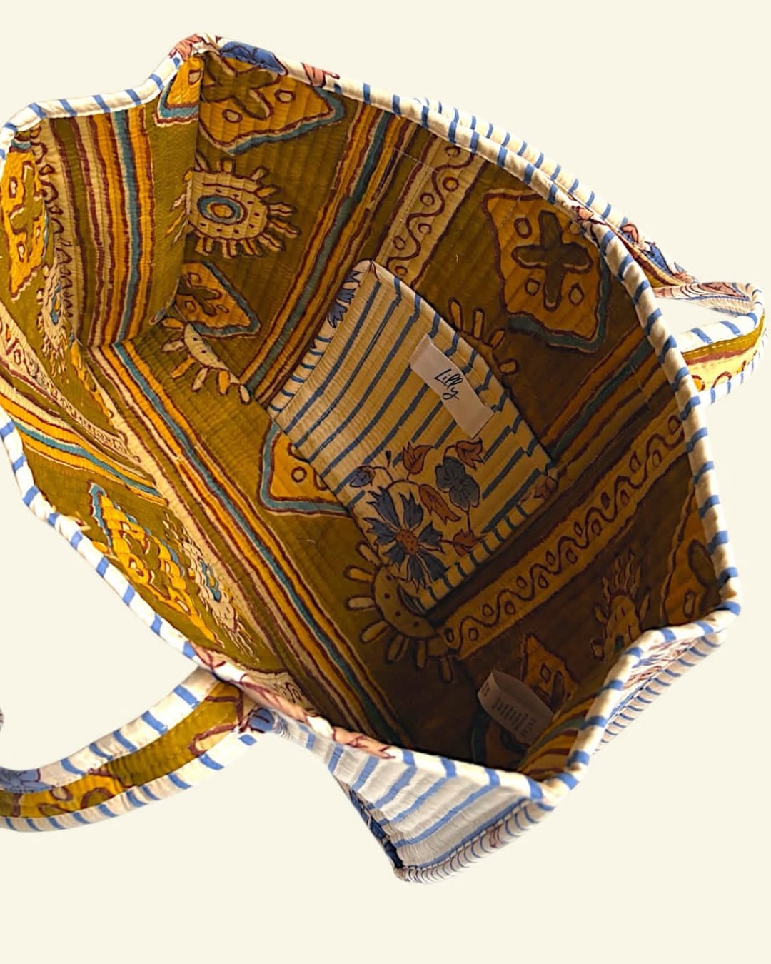 ・インドの職人の手作業によるため、サイズ・柄の出方・ステッチに個体差が生じる場合があります。