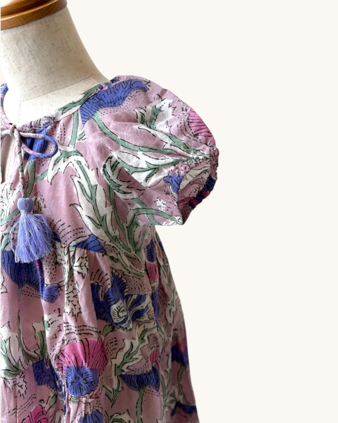 生地にはインドの伝統技法 ブロックプリント を採用。